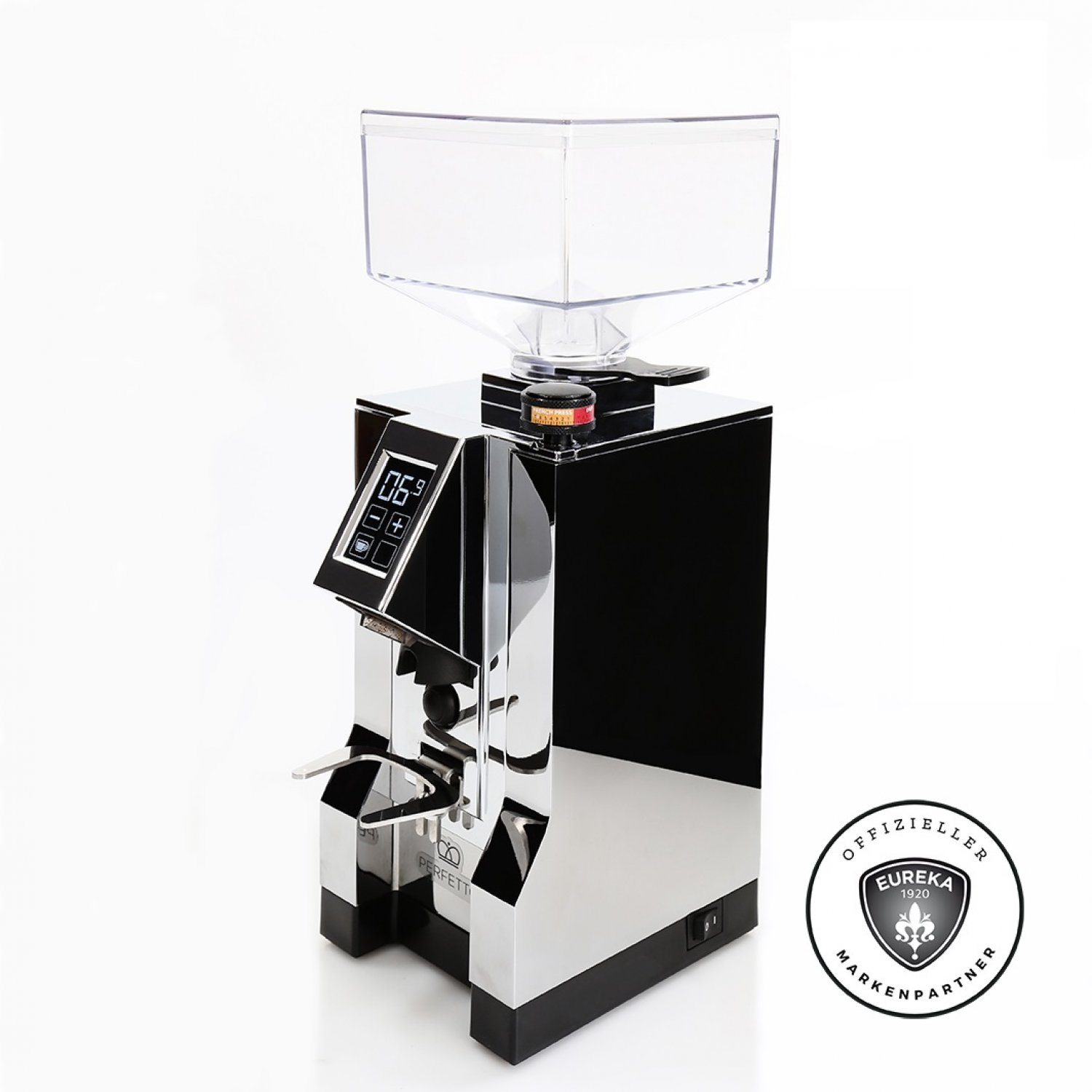 Die Eureka Mignon Perfetto ist eine weitere Version der Nachfolgeserie der schon legendären Eureka Mignon Mühle. Optisch ist sie an das beliebte Design der Vorgängerin angelehnt aber technisch eine konsequente Weiterentwicklung, die keine Wünsche offen lässt. Sie besticht unter anderem durch eine geräuschreduzierte Bauweise, die ein auffallend leises arbeiten möglich macht . Als technisches Highlight hat sie ein Touch- Display über das man mittels +/ – Tastenfeld zwei verschiedene Portioniereinstellungen programmieren kann. Wie in den Profimühlen von Eureka verfügt sie über die ACE Technologie, welche ein verklumpen und elektrostatische Aufladung des Mahlguts verhindert. Sie verfügt über einen Mikroschalter mit Start- / Stopp Funktion. Die mikrometrische Mahlgradeinstellung erfolgt stufenlos über das Drehrad mit Easy Setting System.