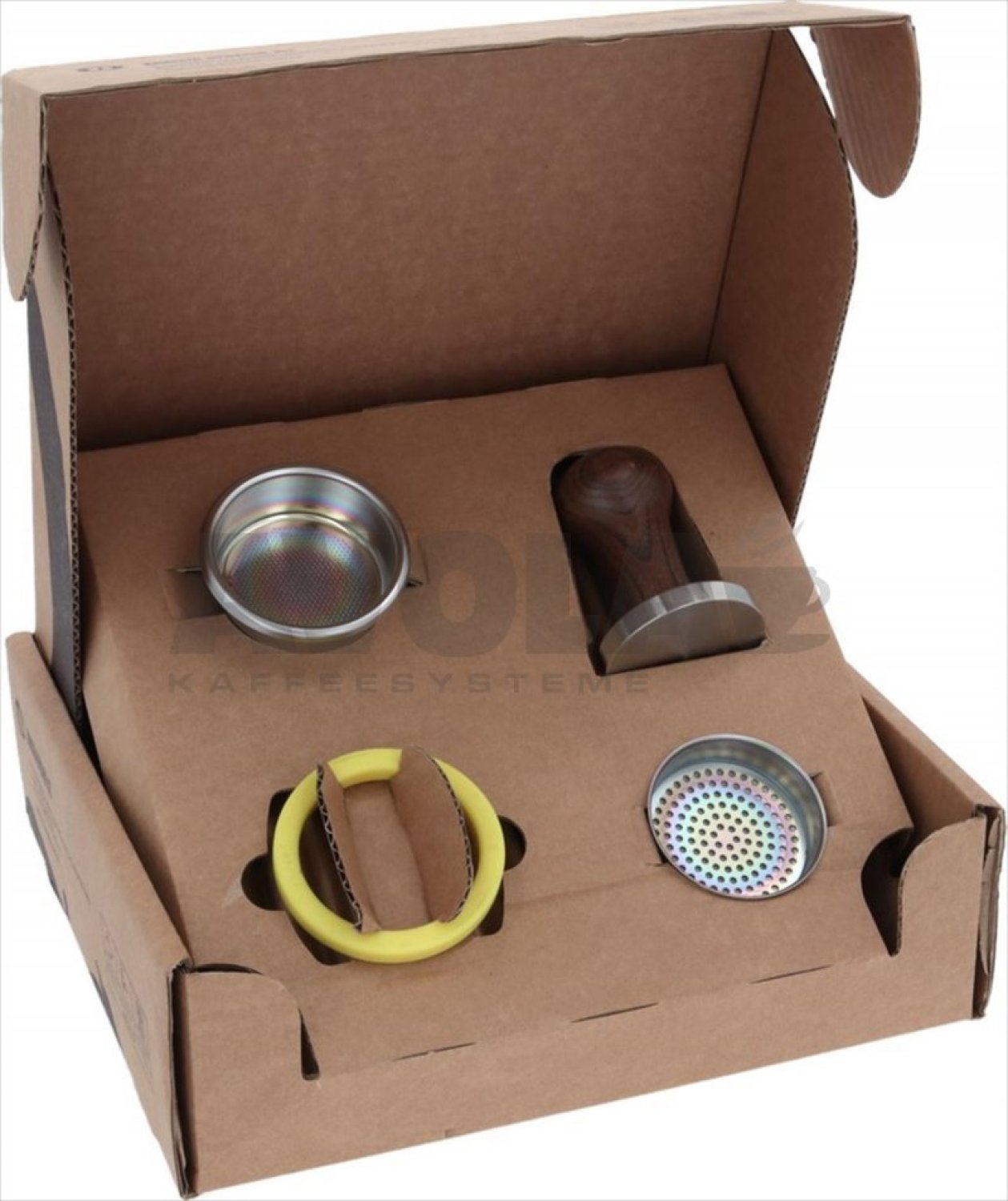bestehend aus:|1 Silikon-Siebträgerdichtung ø 73x57x8,5 mm|1 Nanotec-Präzisionsdusche ø 60 mm|1 Nanotec-Präzisionsfilter 2T 18 gr 70xH24 mm|1 Präzisionstamper ø 58,4 mm Holzgriff|Ein einzigartiger Vorschlag für eine bessere|Extraktion und ein allgemeines Kaffeeerlebnis|in professioneller Qualität. |für SANREMO Modell TREVISO - CUBE
