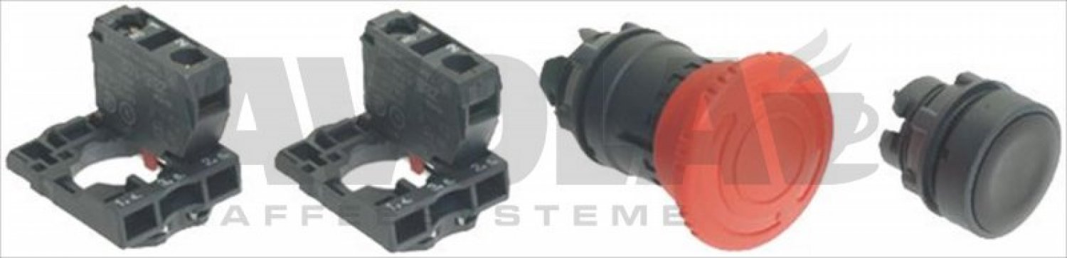 SCHNEIDER - kit composto da pulsante rasato nero|e pulsante di arresto a fungo rosso completi di|supporto e contatto normalmente chiuso