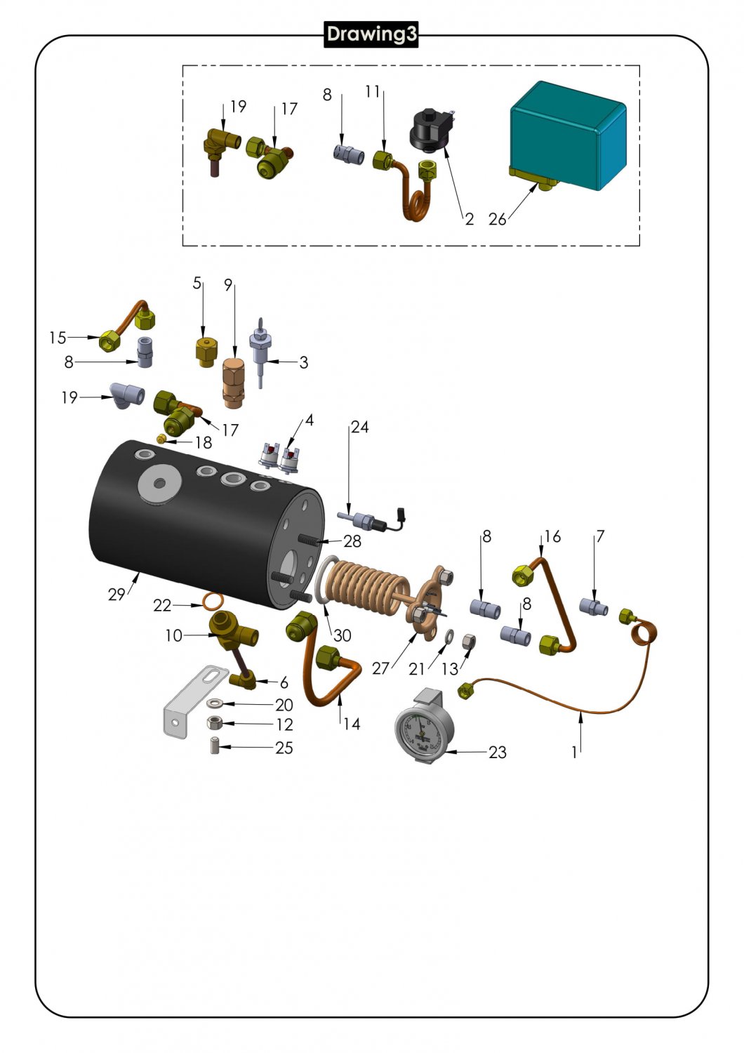 8105714 ECM Rohr Edelstahlkessel zu Dampfventil