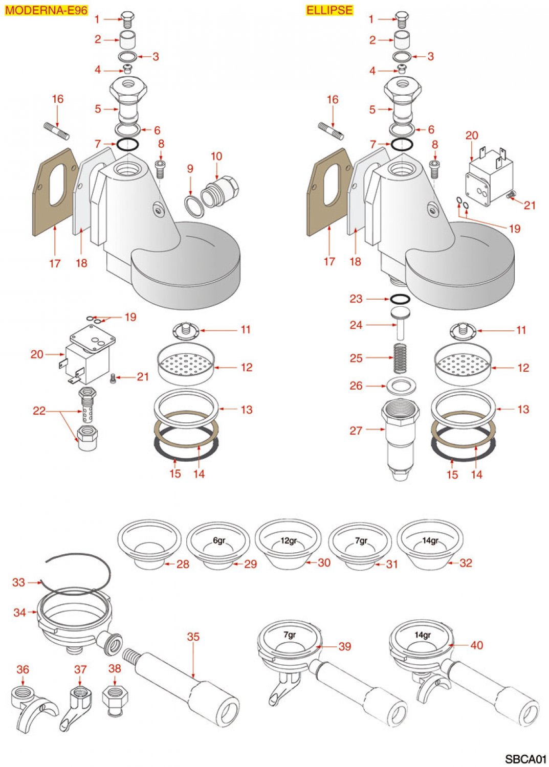 SAB ITALIA BRÜHGRUPPE MODERNA E96 ELLIPSE